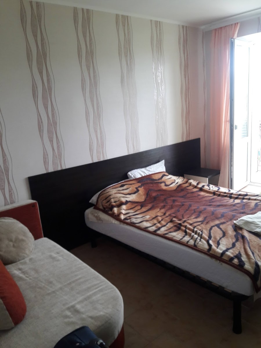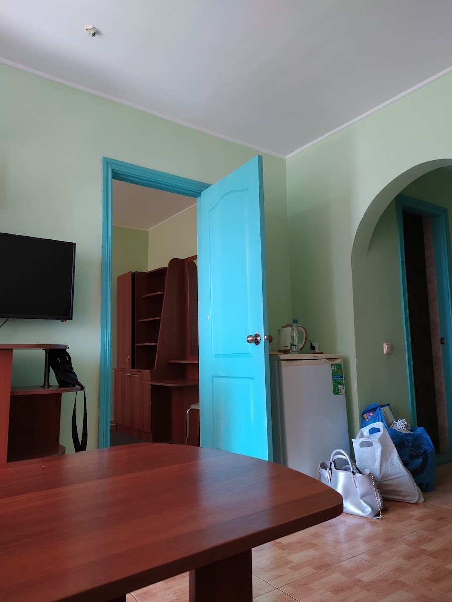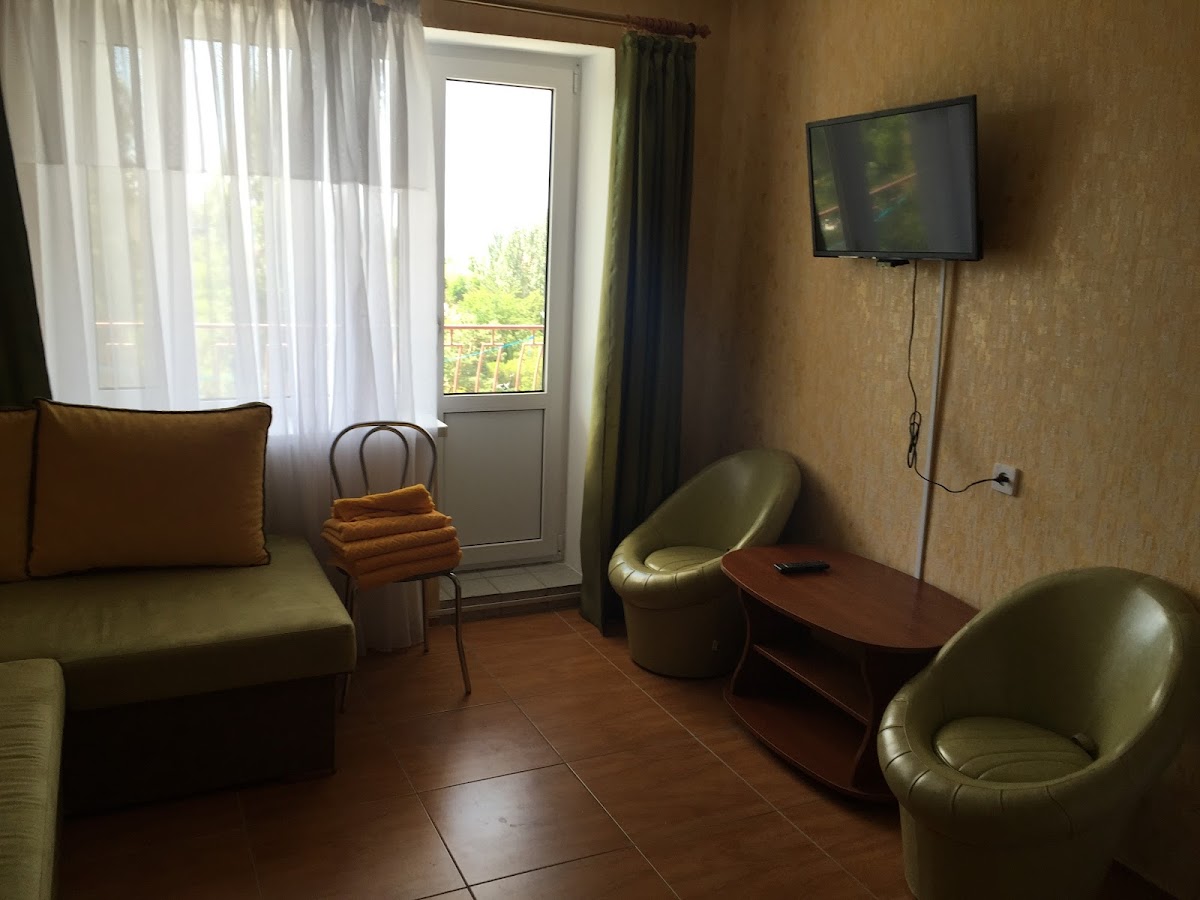 “ Отличный отель, приемлемые цены! Номера с удобствами, в двухместном экономе двухместный диван и двухэтажная кровать с хорошими, пружинными матрасами. Хорошо убирают, все чистенько, даже общий туалет (с душевой) на улице чистый. Пришлось приспособить полку из шкафа на верхнее спальное место, как ограничитель, чтобы ребенок не скатился во сне. В номере большой шкаф в прихожей, и два узких высоких шкафа с полочками в комнате, холодильник. В тазике можно стирать и блейды запускать). Большая хорошая площадка (горки, качели, песочница, лавочки). На территории магазин, столовая и аквапарк. Цены в магазине как и везде, курортные. Хорошая столовая, пельмени лепят сами, из нормального фарша, вкусно, приемлемые цены (см. на фото), приходят и соседи. Аквапарк оплачивается отдельно, не входит в стоимость проживания. Есть большая беседка с мангалом (50грн столик). Из недостатков, нет лифта, здание 5 этажей, в день раз 20ть бегаем по лестнице, и нет набережной для вечерней прогулки, гуляем по соседним площадкам, дорожкам. Можно брать самокат, беговел. К морю мин 3-5 по тенечку. Хорошая пляжная полоса. Отлично для семейного отдыха! ”